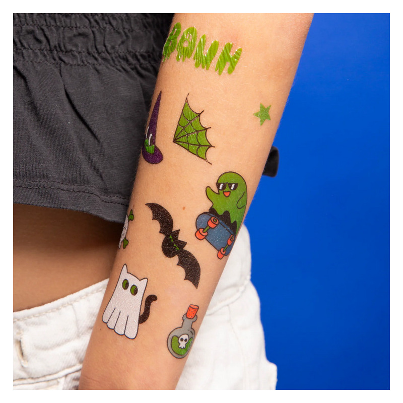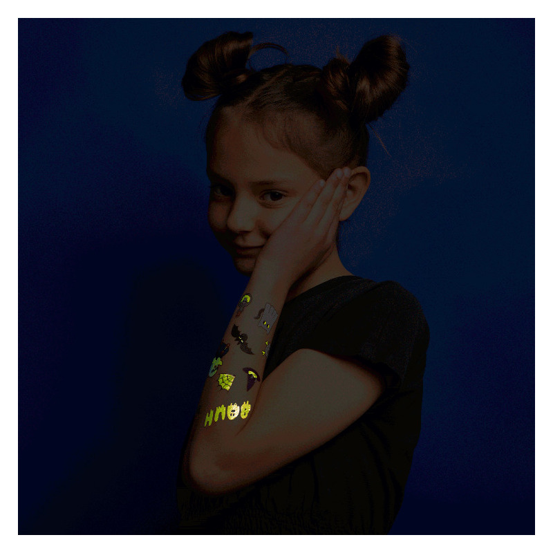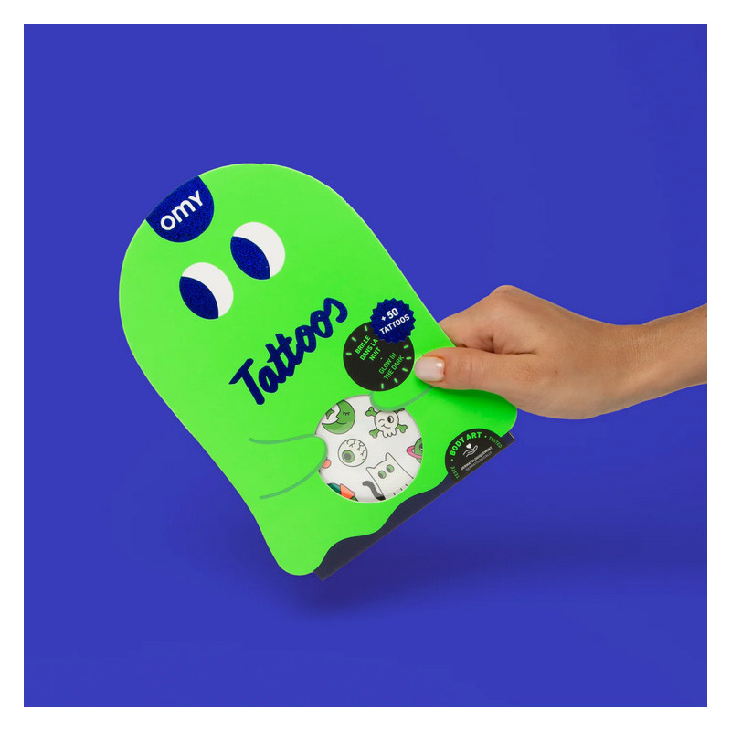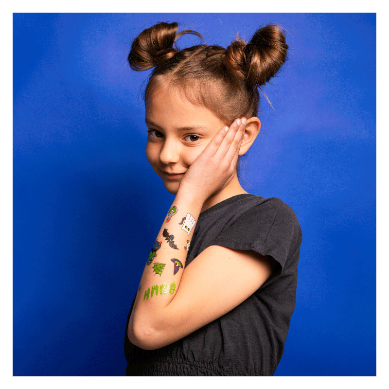 Zmywalne tatuaże Boo! to wyjątkowa ozdoba dla dziecka. W tym upiornym opakowaniu znajdziecie aż 50 fluorescencyjnych i kolorowych zmywalnych tatuaży, które możecie przyklejać na całym ciele! Tatuaże są łatwe w użyciu, trwałe i przetestowane dermatologicznie.
