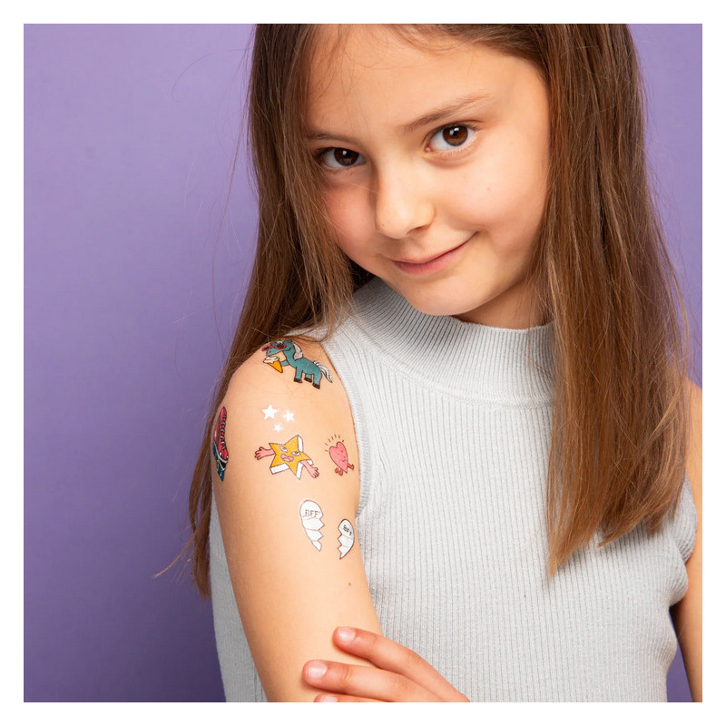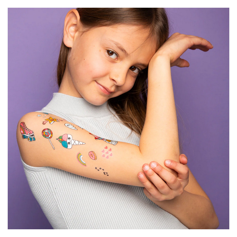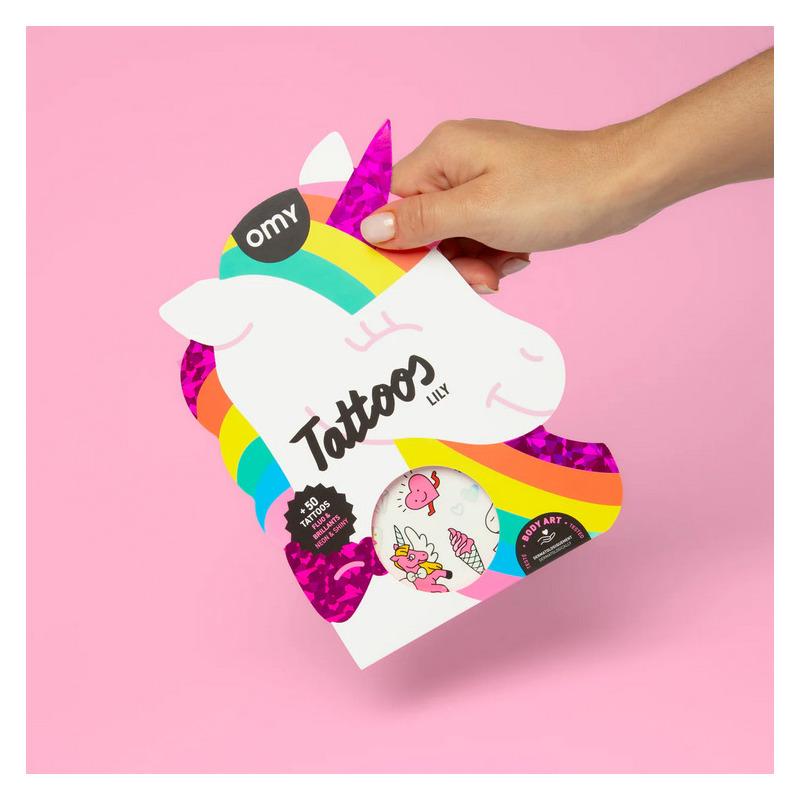 Zmywalne tatuaże Lily to wyjątkowa ozdoba dla dziecka. W tym uroczym opakowaniu znajdziecie aż 50 kolorowych, ciekawych i zabawnych zmywalnych tatuaży, które możecie przyklejać na całym ciele przez cały rok. Tatuaże są łatwe w użyciu, trwałe i przetestowane dermatologicznie.