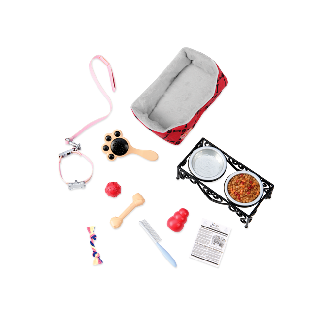Zestaw akcesoriów do pielęgnacji i troszczenia się o pieska - z pewnością przyda się podczas kreatywnej zabawy lalkami Our Generation oraz pluszowymi pieskami - szczeniaczkami, którym chcemy zapewnić odpowiednią opiekę.