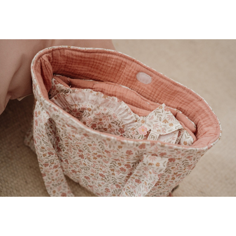 TORBA NA PIELUCHY i akcesoria dla lalek beżowa w kwiatuszki Little Dutch 3+