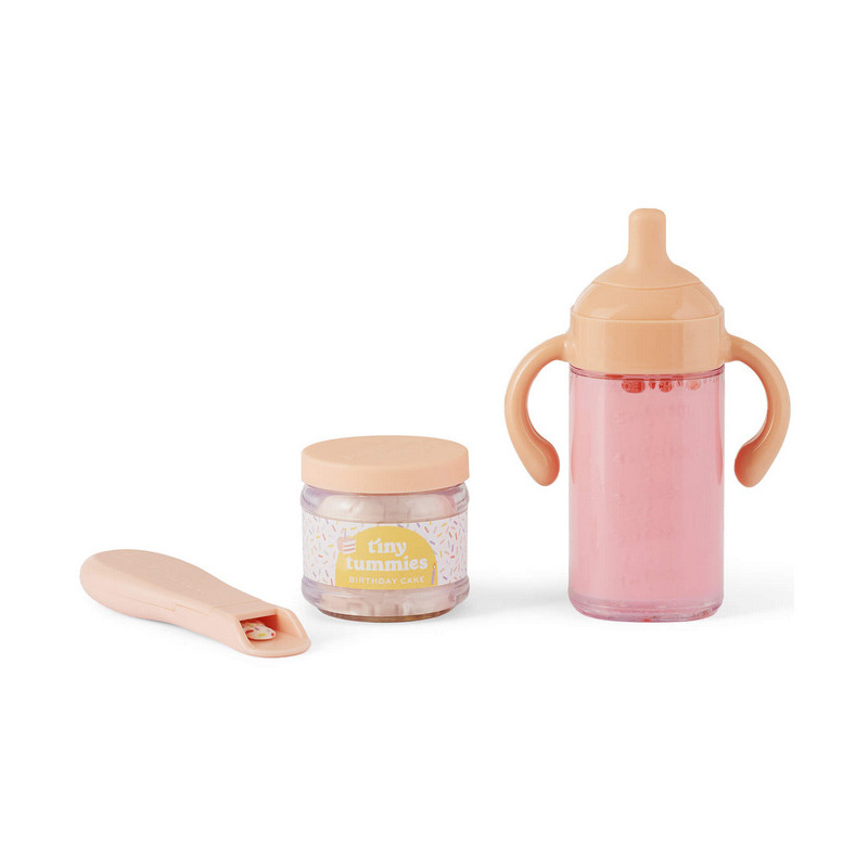 Z tym uroczym zestawem świętowanie urodzin będzie jeszcze przyjemniejsze, a opieka nad lalką staje się jeszcze bardziej wciągająca i realistyczna! Dzieci mogą podawać „jedzenie” z magicznego słoiczka i obserwować, jak znika z łyżeczki, a także podawać lalce kubeczek-niekapek mleka, którego zawartość stopniowo się zmniejsza.