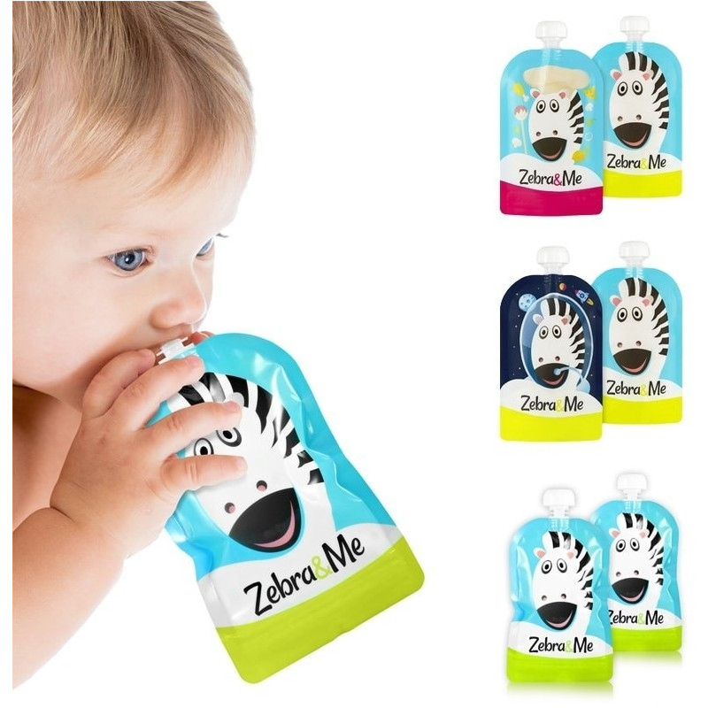 Kolorowe wielorazowe saszetki na pokarm dla niemowląt