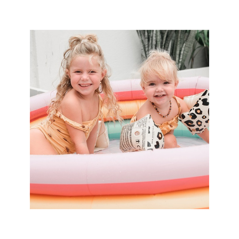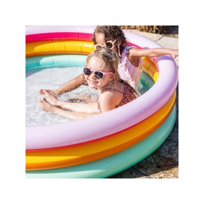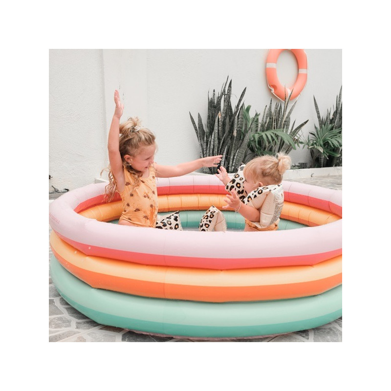 Basen dla dzieci w tęczowych kolorach składa się z 3 dmuchanych