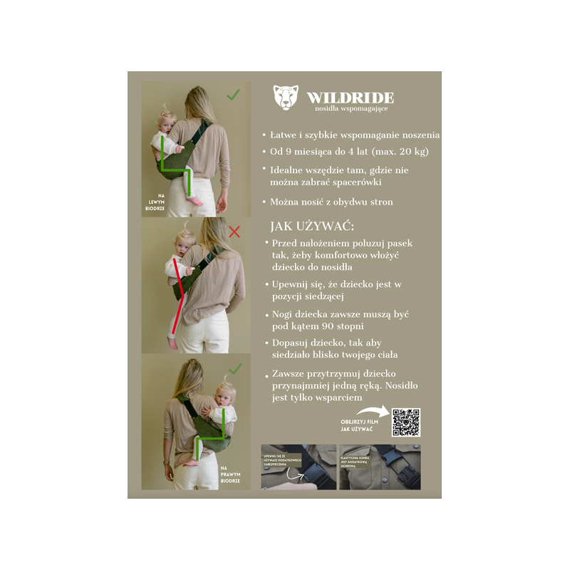 Nosidło wspomagające Wildride w kolorze beżowym ze wzorem zebry to praktyczne nosidło,