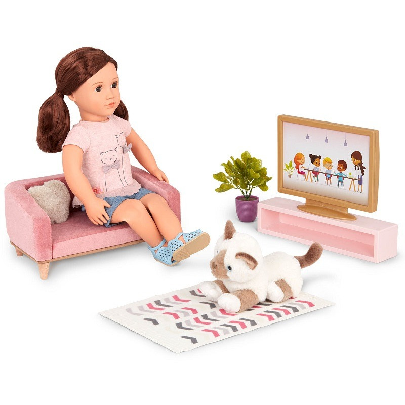 ZESTAW MEBLI DO SALONU z akcesoriami dla lalki 46 cm