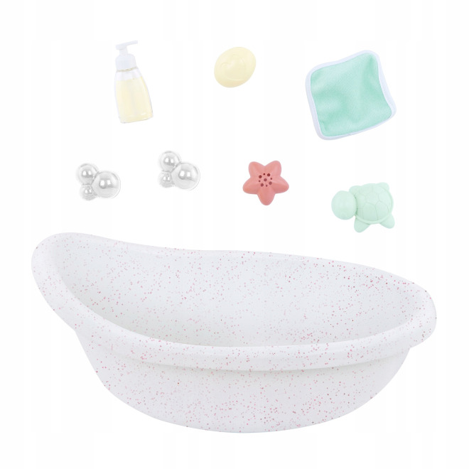Zestaw z wanną oraz akcesoriami kąpielowymi z serii LullaBaby to prawdziwy niezbędnik opiekuna niemowlęcia. Zestaw zawiera wszystko, czego potrzeba, aby przygotować prawdziwą kąpiel swoim lalką.