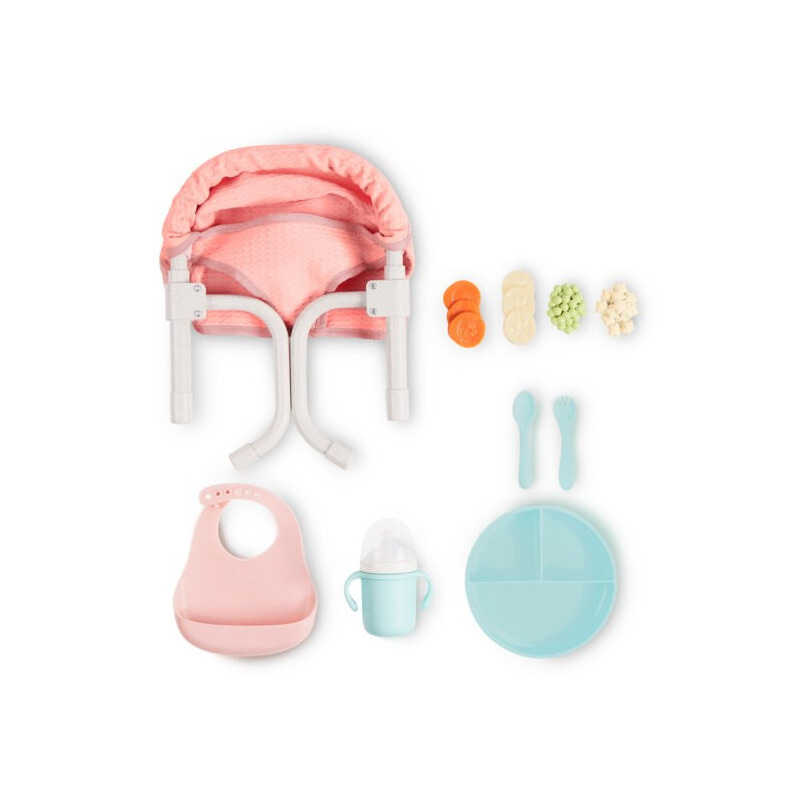 Fotelik przyczepiany do blatu wraz z akcesoriami do karmienia umożliwi zabawę w opiekę nad noworodkiem – aranżowanie mu zdrowego, wartościowego posiłku. Zarówno lalka, jak i jej właścicielka będą zachwycone!