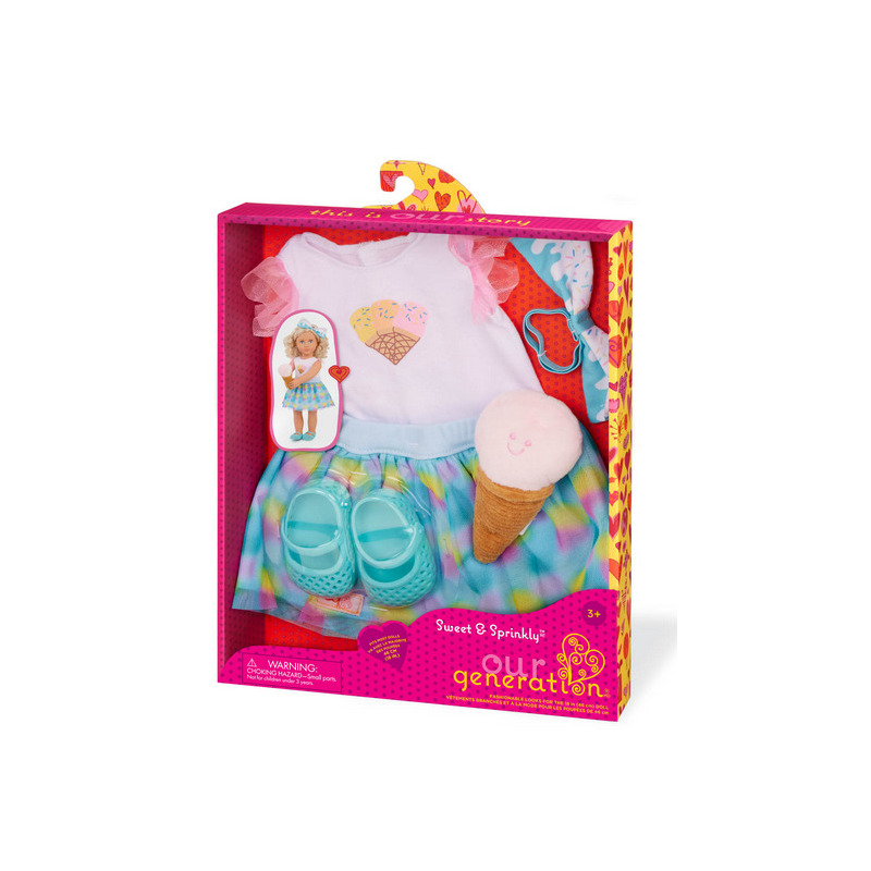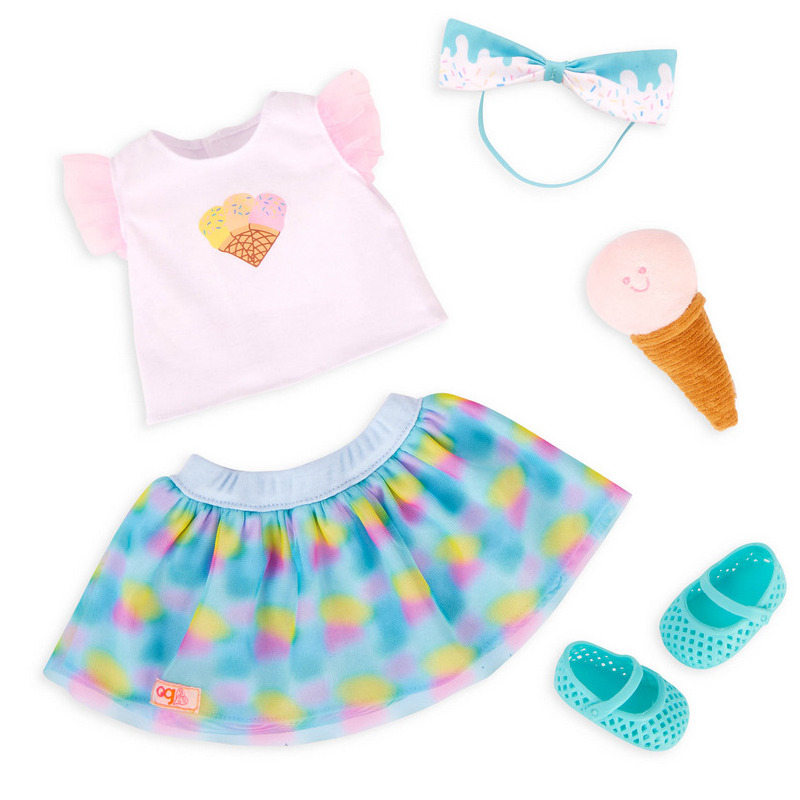 ZESTAW UBRANEK z motywem lodów dla lalki 46 cm standard Our Generation 3+
