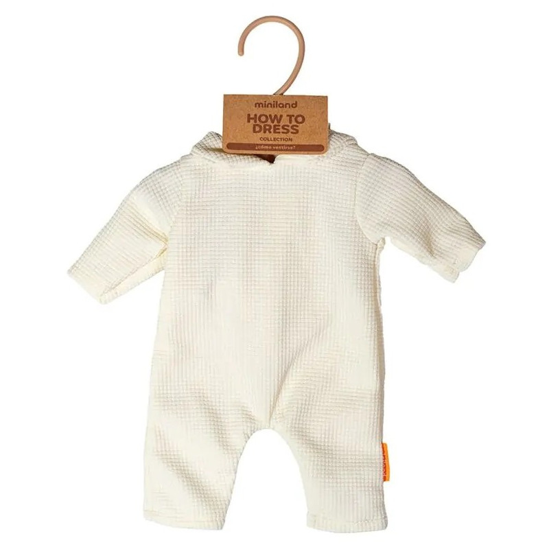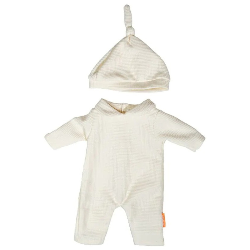 BEŻOWA DZIANINOWA PIŻAMKA zestaw z czapeczką ubranko dla lalki 38 cm Miniland