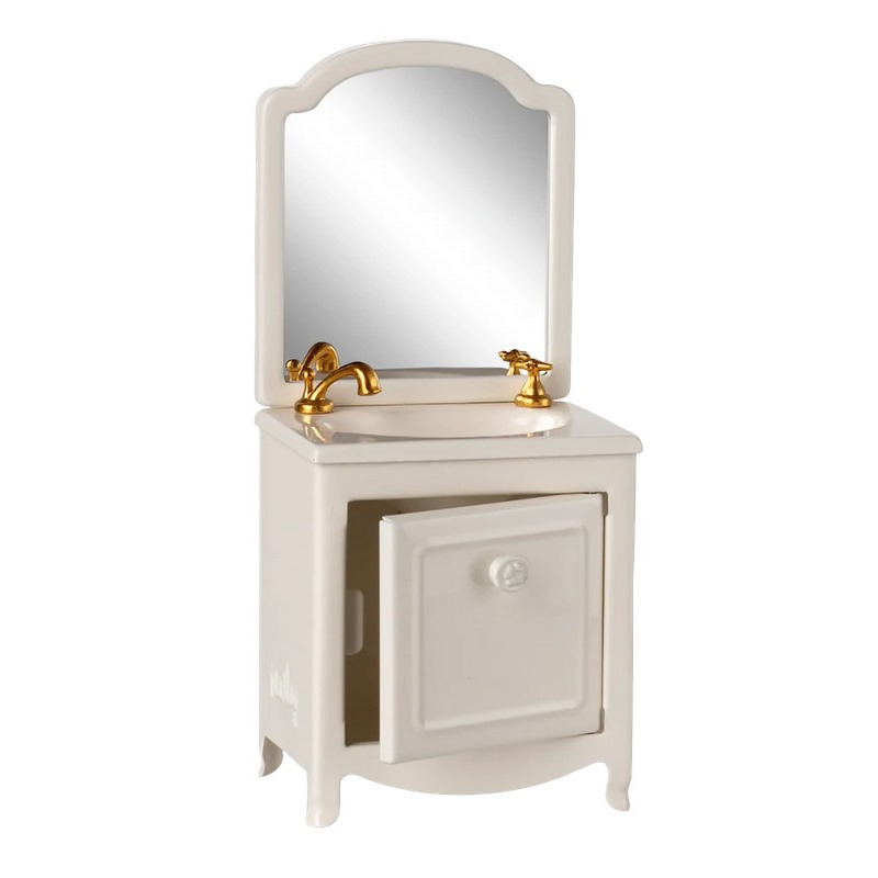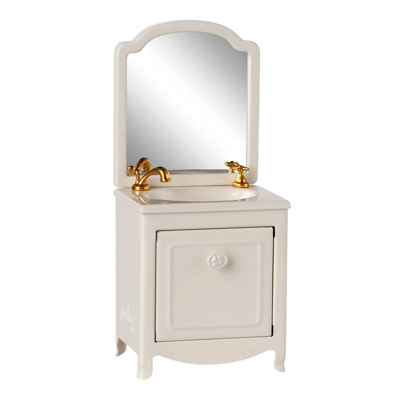 MINIATUROWA KOMODA Z UMYWALKĄ ŁAZIENKOWĄ metalowa biała vintage akcesoria dla myszek i lalek Off white Maileg 3+