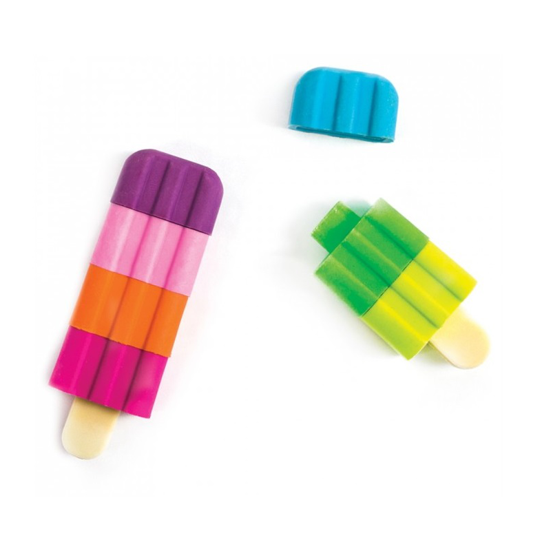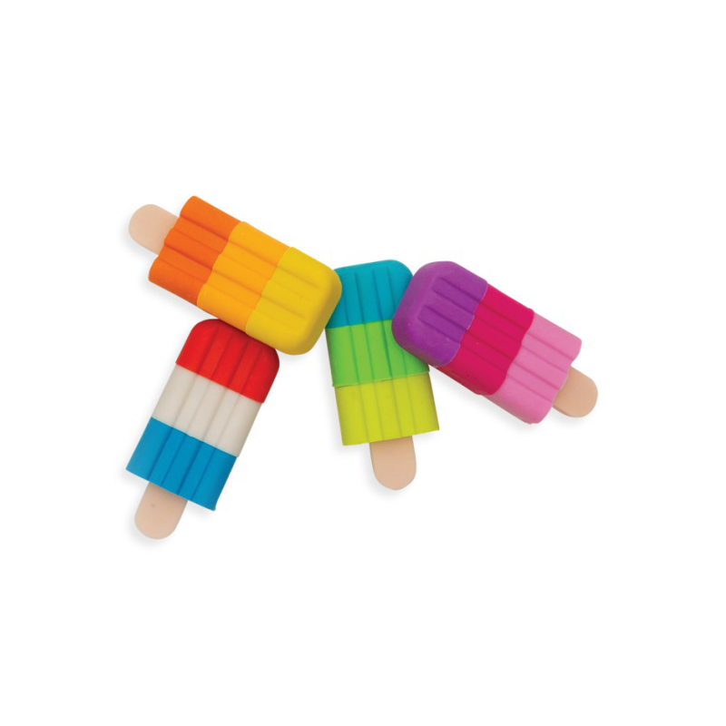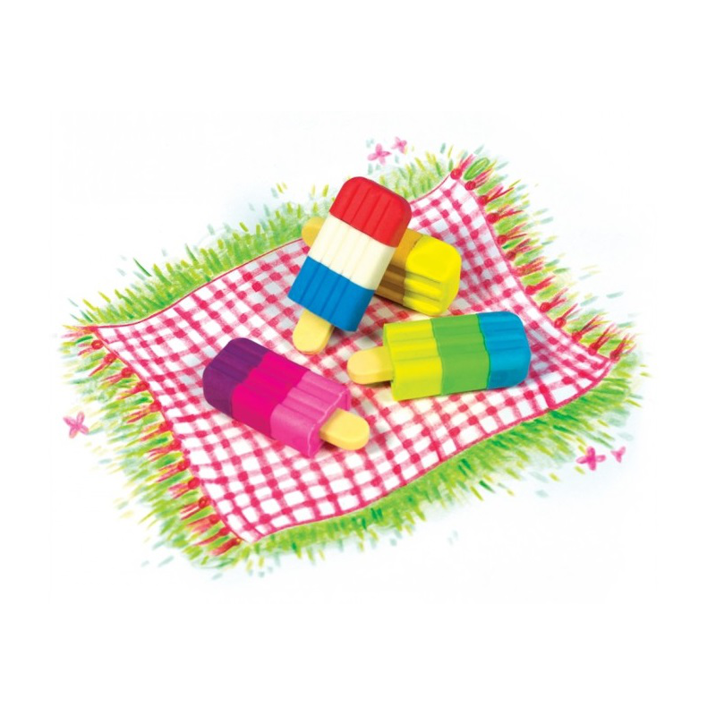 Zestaw gumek do ścierania zawiera 4 lody o zapachu owoców.
