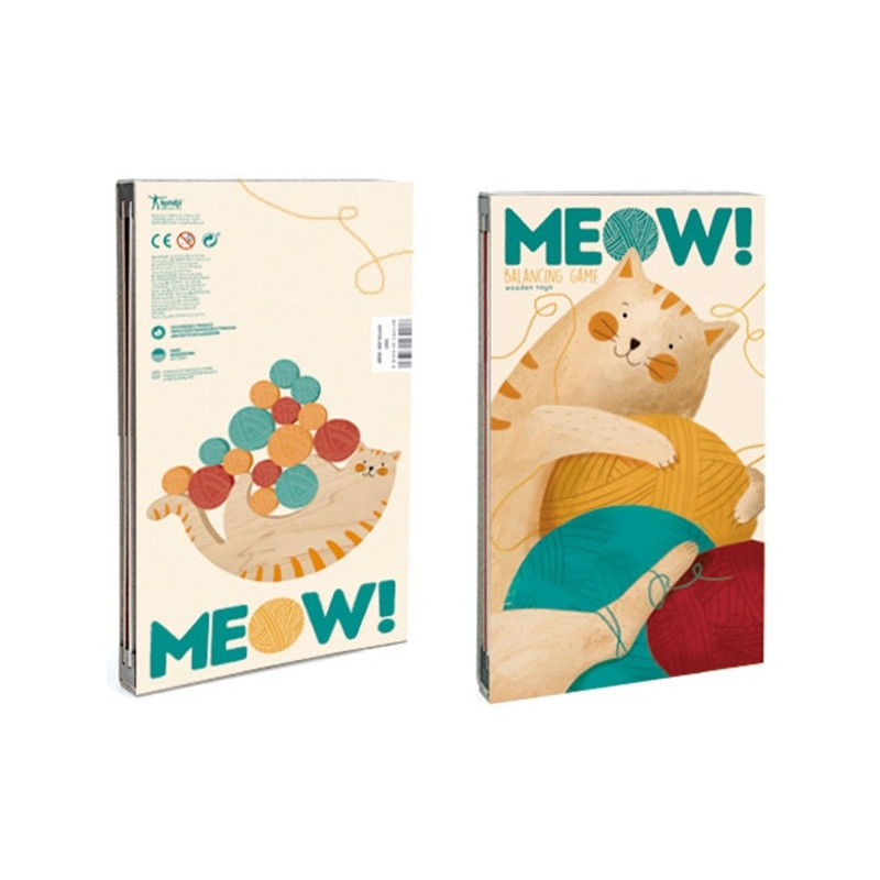 Drewniany kotek i kolorowe szpulki z pewnością zainteresują Malucha.