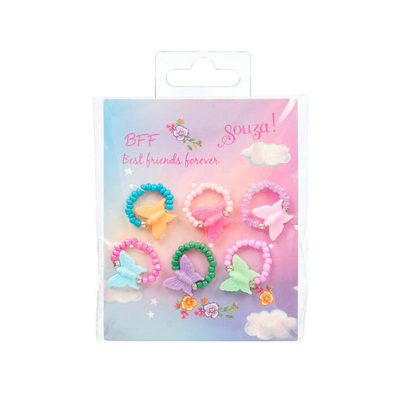 Komplet 6 pierścionków z koralików z motylkami Dana marki Souza przeznaczony jest dla przyjaciółek, które chcą nosić analogiczne ozdoby.