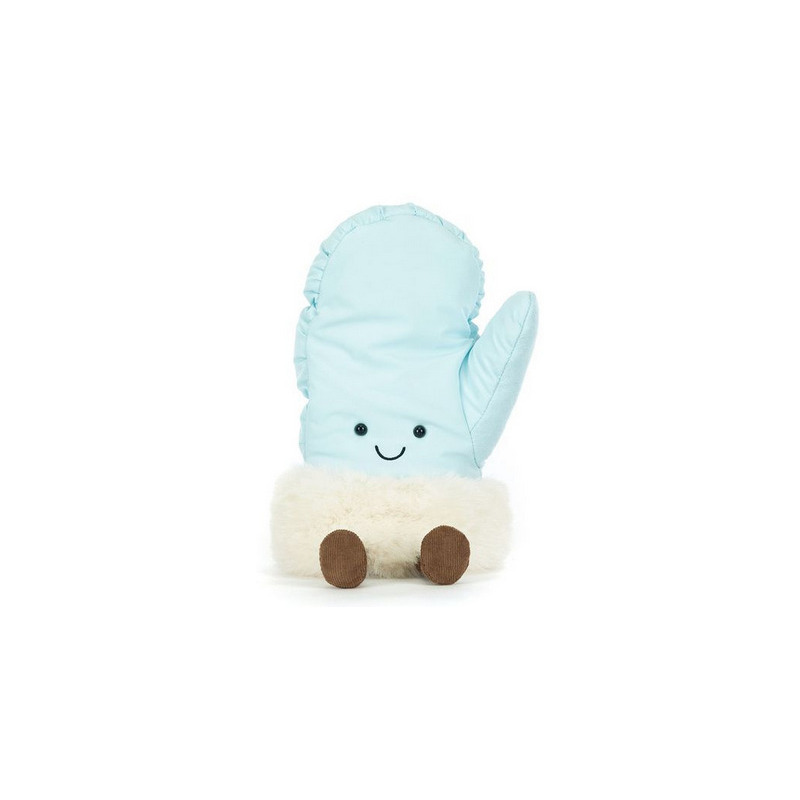 Rękawiczka z Jednym Palcem z zimowej kolekcji Jellycat London w błękitnym kolorze, z miękkim futerkowym mankietem i brązowymi nóżkami z prążkowanego materiału, wygląda niezwykle przytulnie i pogodnie. Ma haftowany uśmiech i błyszczące oczka, które dodają jej charakteru i uroku. Pluszowa rękawiczka sprawdzi się jako zimowy akcent w dziecięcym pokoju oraz wierny towarzysz zabaw i przytulania dla dużych oraz małych wielbicieli zimy.