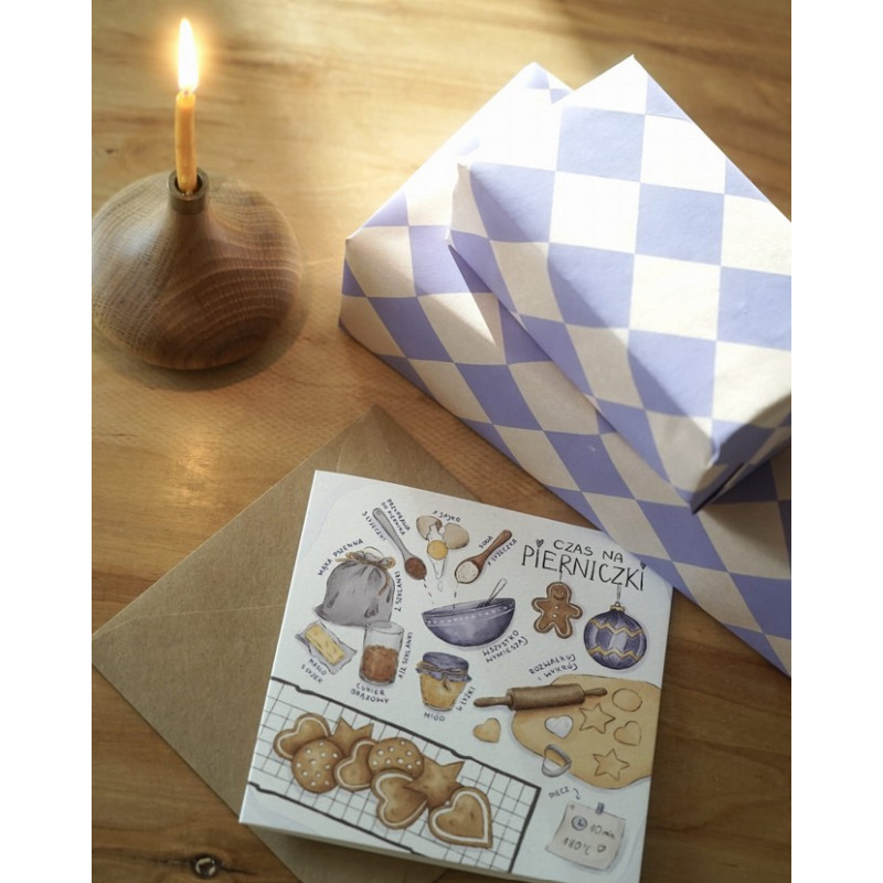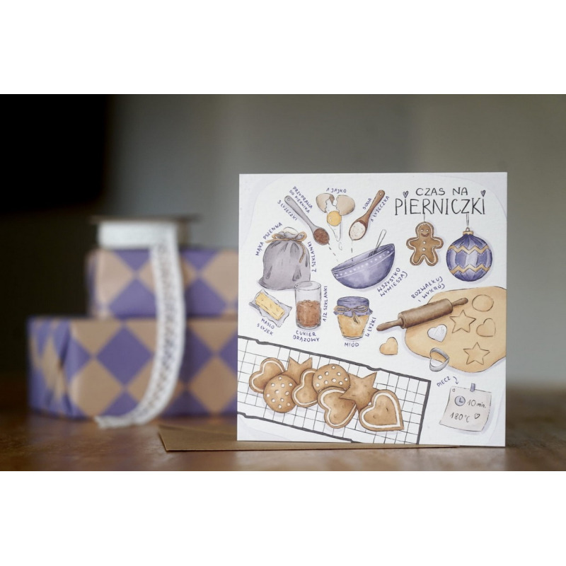 Urocza kartka na Boże Narodzenie z gotowym przepisem na pierniczki. Możesz podarować ją bliskiej osobie, która dostanie jednocześnie prezent sentymentalny i praktyczny. Pamiętaj o swoich przyjaciołach i podaruj im coś więcej niż wiadomość sms.
