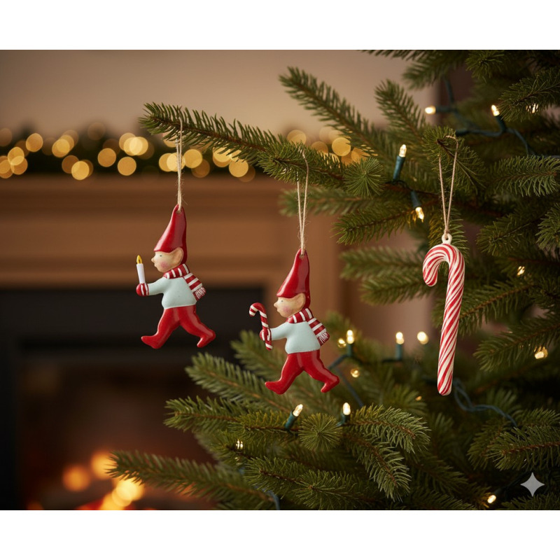 Wspaniała ozdoba, która zawiśnie na Waszym świątecznym drzewku. Uroczy skrzat ze swoją laską cukrową został wykonany z metalu, ręcznie malowane detale dodadzą mu uroku! Idealny, oryginalny dodatek do świątecznego prezentu.