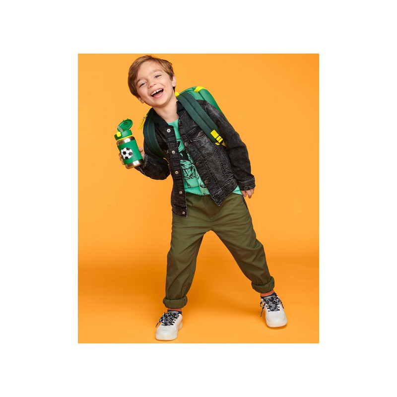 Butelka na wodę ze stali nierdzewnej, z ulubionym wzorem Twojego malucha. Bidon posiada miękki silikonowy ustnik, który zamyka się na czas transportu. Butelka termiczna pomaga utrzymać chłód/ciepło napojów w podróży. Antypoślizgowy silikonowy rękaw chroni małe dłonie przed temperatur Dodatkową zaletą jest pasek na rzep, który pozwoli przyczepić