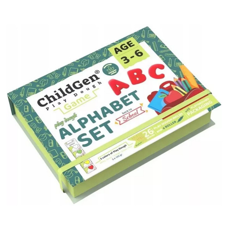 ALFABET - literki zestaw kreatywny 100% naturalna ciastolina 5 szt. x 125g i akcesoria ChildGen 3+