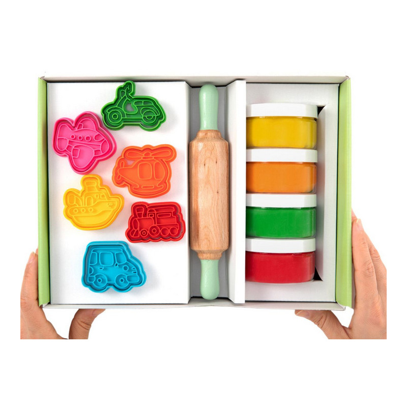 Zestaw zawiera foremki w kształcie pojazdów w różnych kolorach, a ciastolina dostępna jest w barwach zielonym, pomarańczowym, żółtym i czerwonym. Dzięki tej bogatej palecie kolorów, dzieci mogą tworzyć niezwykle barwne i oryginalne pojazdy, rozwijając przy tym swoje zdolności manualne.