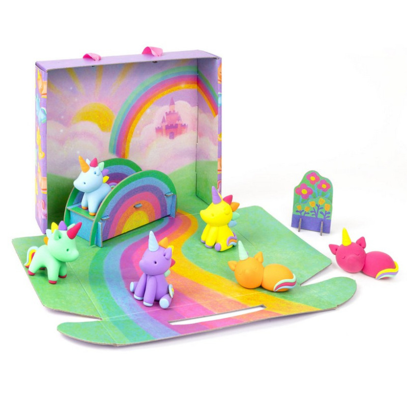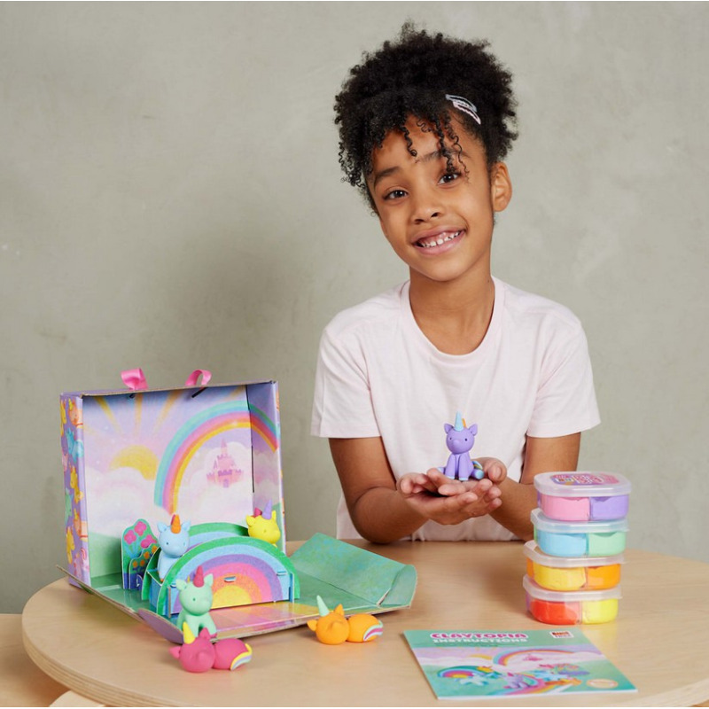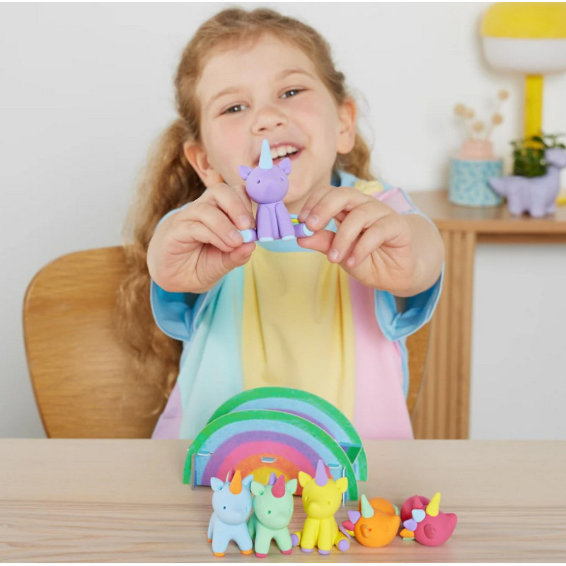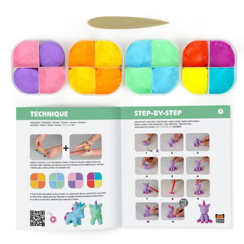 Magia w zasięgu ręki! Zestaw Plastyczna Przygoda: Jednorożce od Tiger Tribe przenosi dzieci w bajkowy świat kreatywnej zabawy i fantazji. W komplecie znajduje się wszystko, czego potrzeba, by ulepić urocze, kolorowe jednorożce z lekkiej, schnącej na powietrzu masy plastycznej, a następnie ożywić je na dołączonej scenie. To twórcze połączenie lepienia, odgrywania ról i rozwijania wyobraźni.