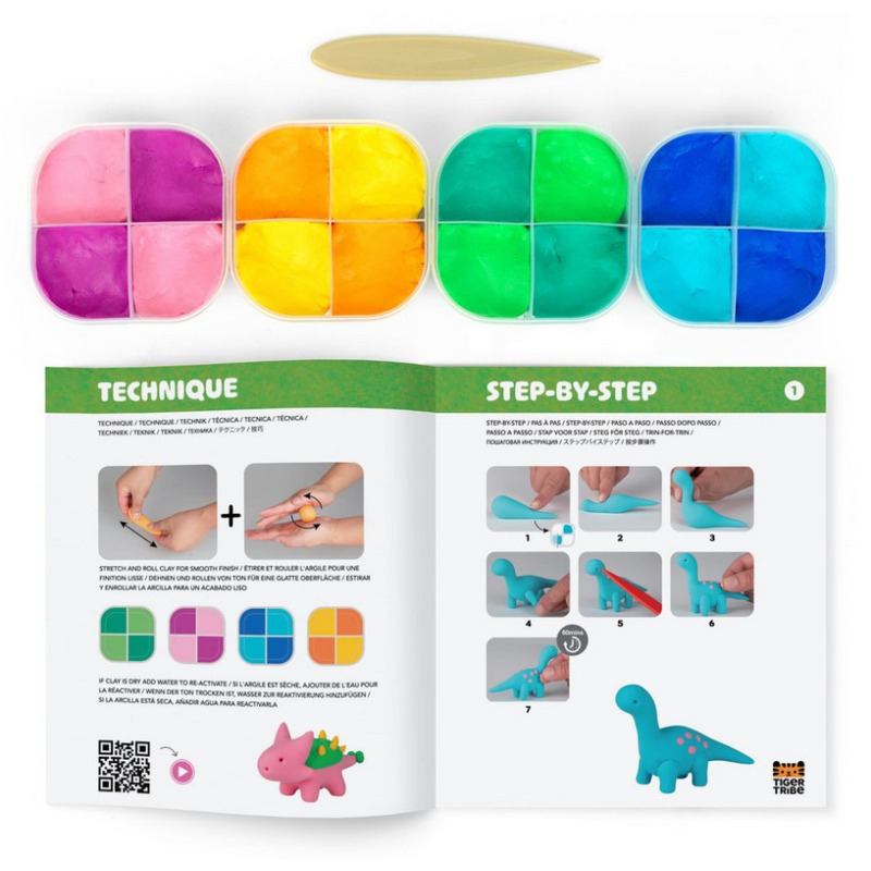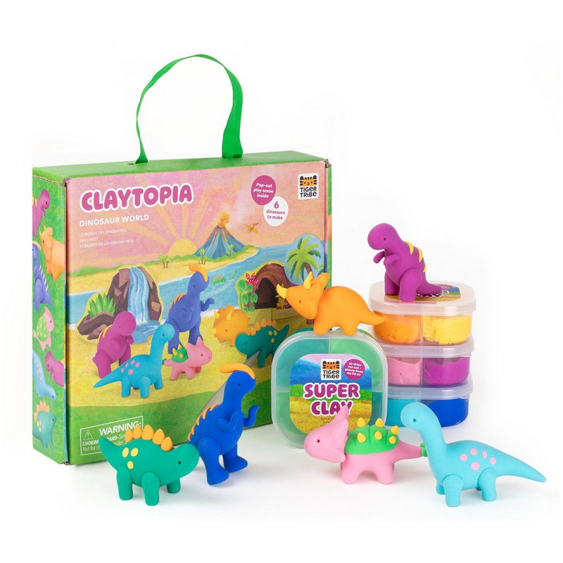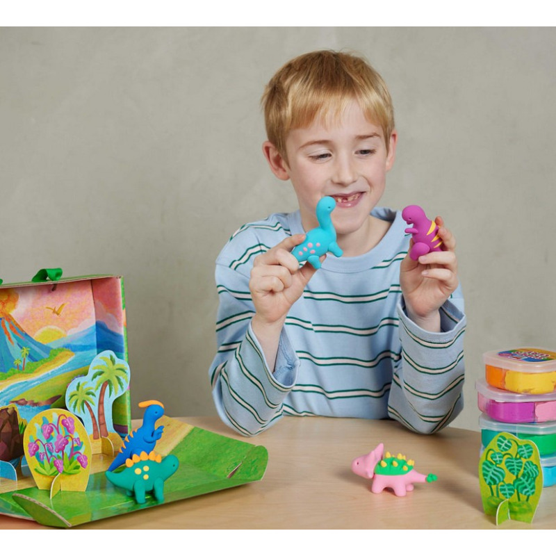 Przenieś się do prehistorycznego świata i stwórz własne, kolorowe dinozaury! Zestaw Plastyczna Przygoda: Dinozaury od Tiger Tribe to wyjątkowa propozycja dla małych artystów, którzy kochają modelowanie, kreatywność i odkrywanie. W komplecie znajduje się wszystko, czego potrzeba, by ulepić figurki z lekkiej, schnącej na powietrzu masy plastycznej i ożywić je na dołączonej planszy do zabawy.
