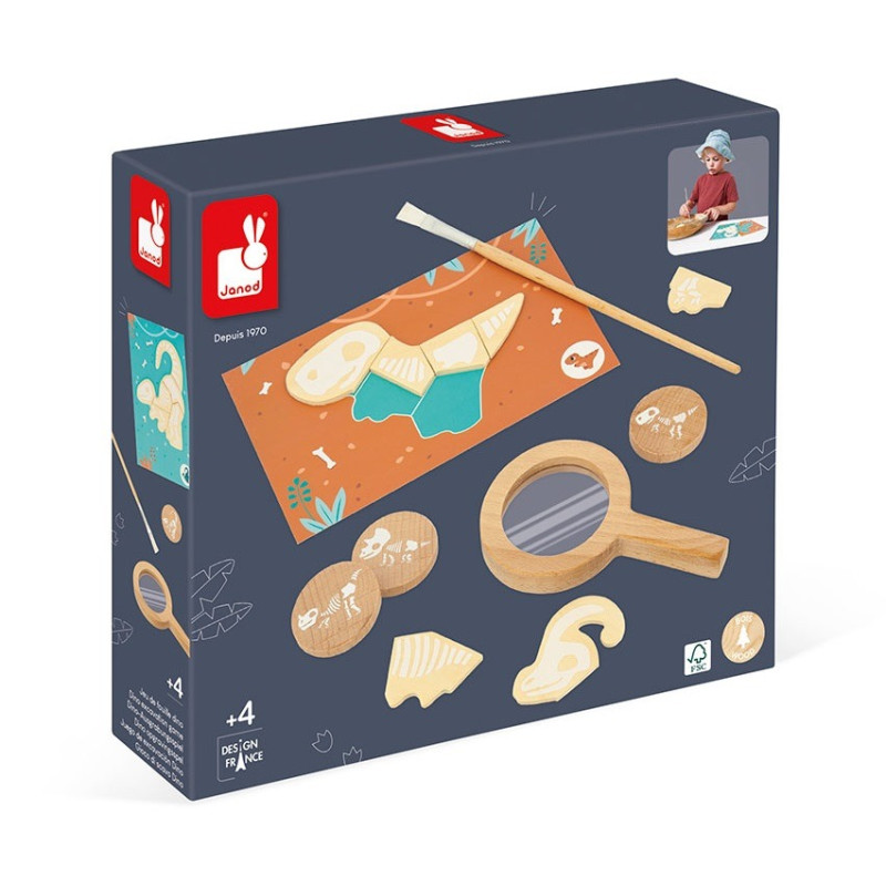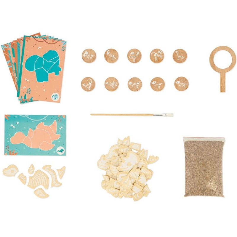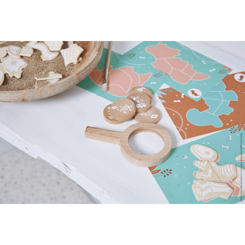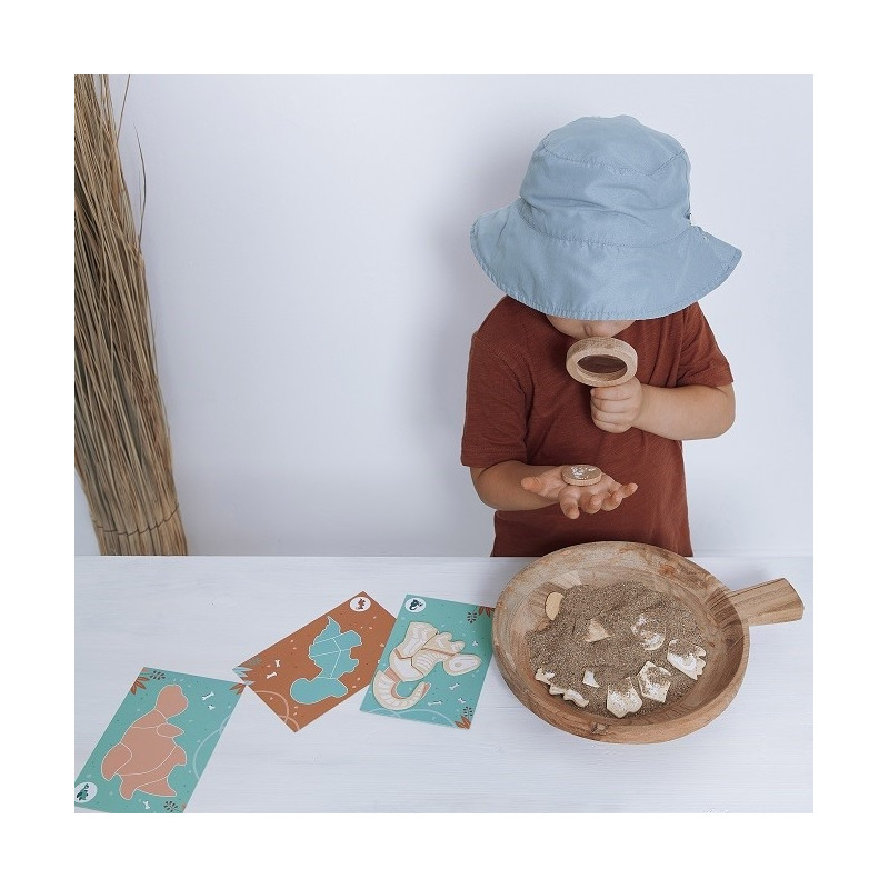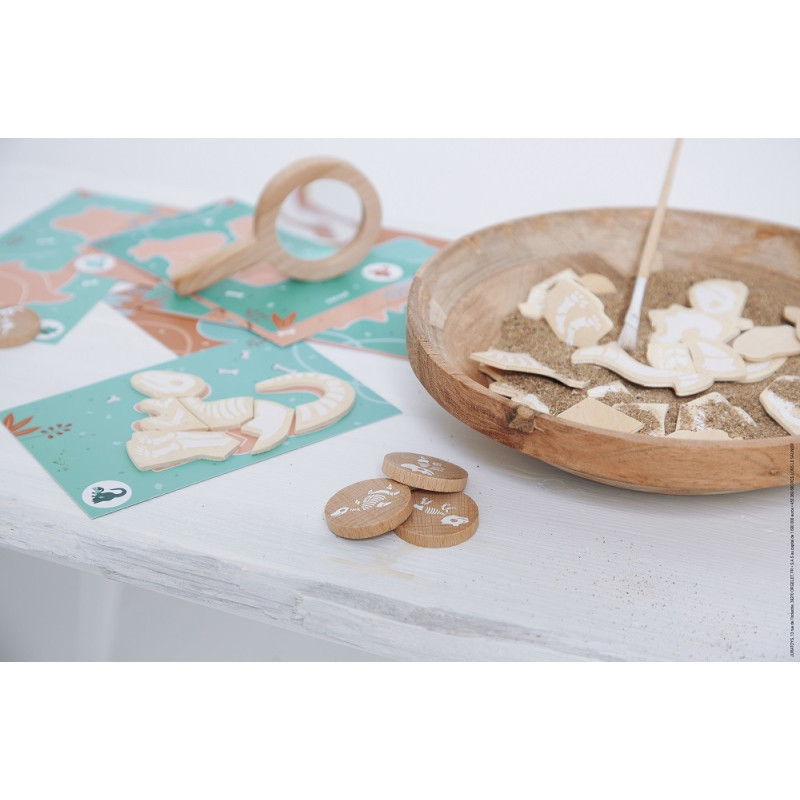Drewniana gra Wykopaliska z kolekcji Dinozaury rozwija u dziecka wiele kluczowych umiejętności,