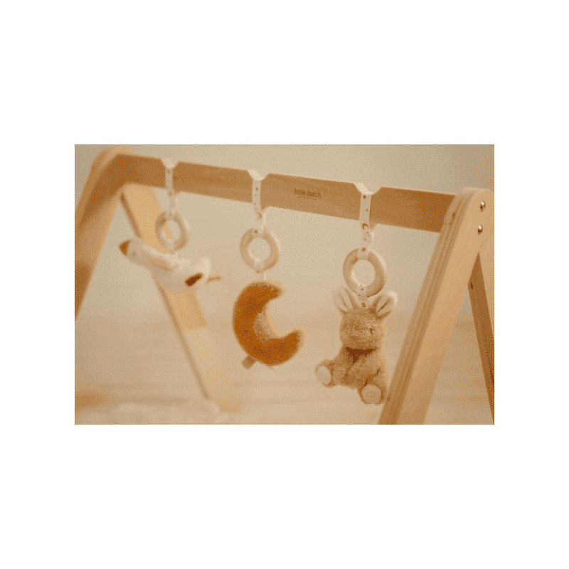 Ten elegancki pałąk z kolekcji Newborn Naturals od Little Dutch to idealna propozycja dla rodziców, którzy chcą wspierać rozwój swojego dziecka już od pierwszych tygodni życia. Wykonany z trwałego drewna, pałąk zachęca maluszka do aktywności i eksploracji, rozwijając jego zdolności motoryczne oraz ciekawość świata. Zawieszki w kształcie księżyca, króliczka i gąski są miękkie, przyjazne w dotyku i zaprojektowane z myślą o najmłodszych.