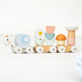 DREWNIANE PIESKI zabawka do ciągnięcia