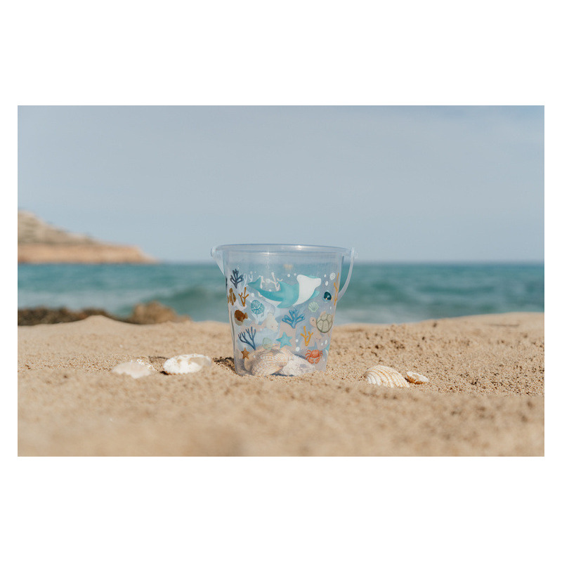 Spraw, aby dzień na plaży był jeszcze przyjemniejszy dzięki temu przezroczystemu wiaderku z uroczymi bohaterami z serii Ocean Dreams! Przezroczysty materiał pozwala zobaczyć wszystkie swoje zdobycze! Niezależnie od tego, czy będzie służyć Wam do zbierania muszelek na plaży, czy do stawiania zamków z piasku - świetna zabawa gwarantowana!