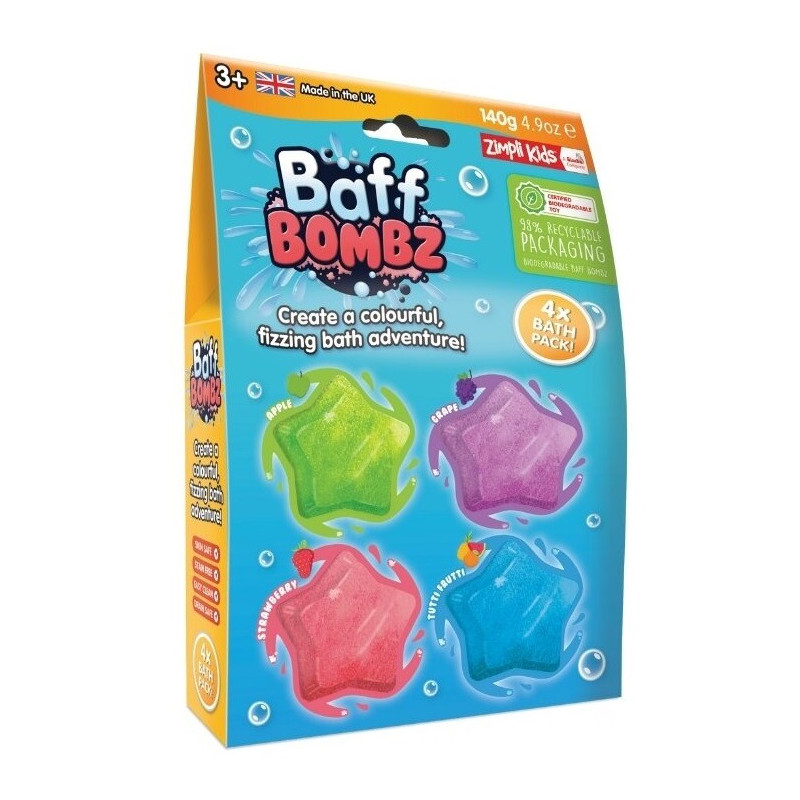 MUSUJĄCE GWIAZDKI DO KĄPIELI zmieniające kolor wody 4 szt. Baff Bombz 140 g