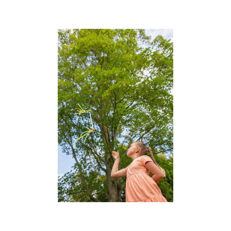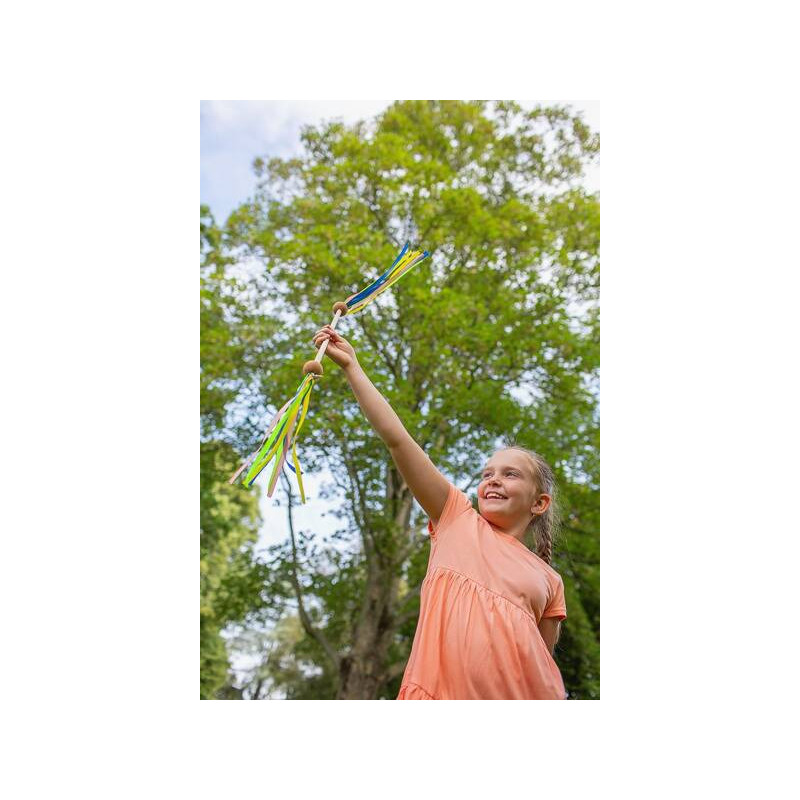 Pałeczka jest drewniana i składa się z kolorowych materiałowych wstążek