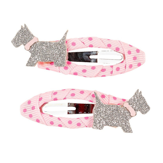 Komplet dwóch spinek do włosów z brokatowymi pieskami zachwyca detalami.