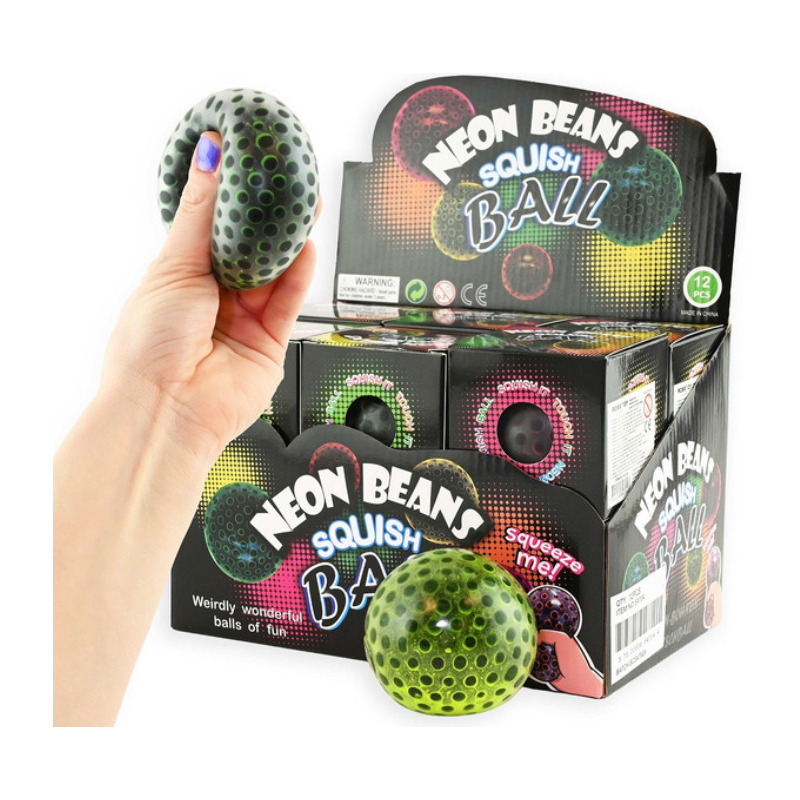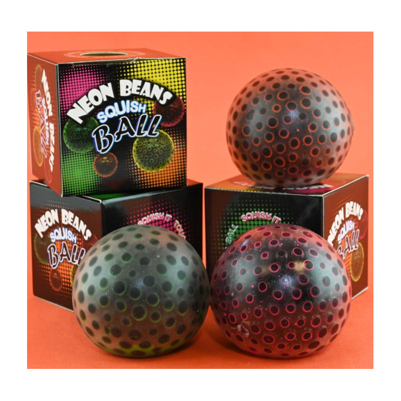 NEON sensoryczny gniotek z kulkami/fasolkami 4 kolory 7 cm 3+