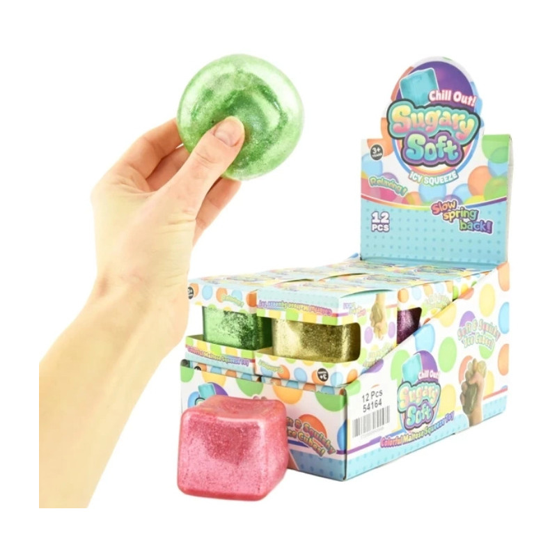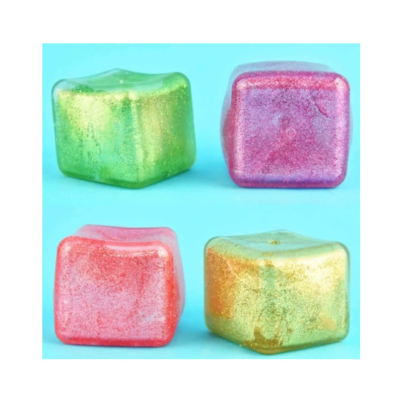 KOSTKA LODU sensoryczny gniotek z połyskiem 4 kolory 5 cm 3+