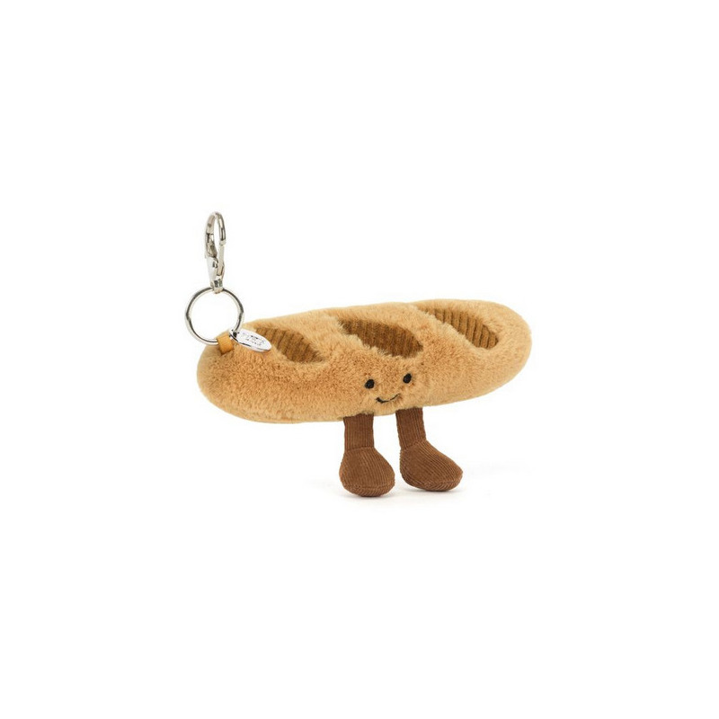 Ta rozkoszna bagietka to nie przekąska, lecz stylowy breloczek z charakterem! Stworzona przez Jellycat London w ramach kolekcji Amuseables, łączy śmieszny design inspirowany klasycznym francuskim pieczywem z mięciutką teksturą i dopracowanymi detalami. Dzięki praktycznej zawieszce może ozdobić plecak, torbę lub klucze – wprowadzając odrobinę humoru do codziennych wyjść.