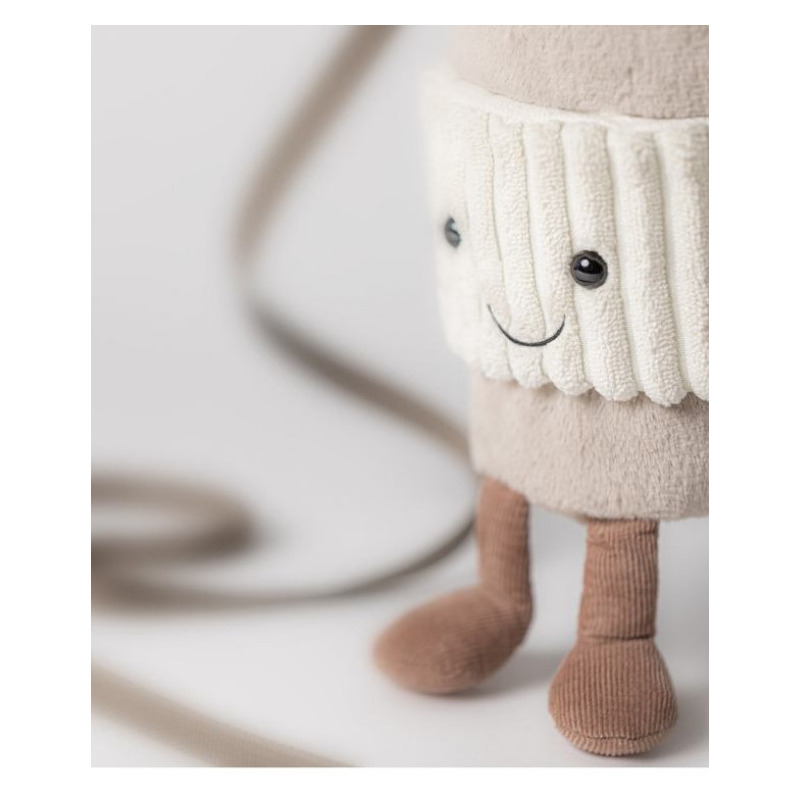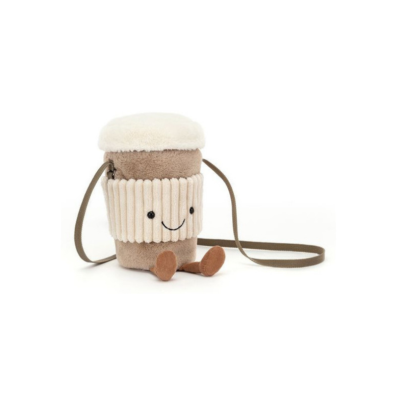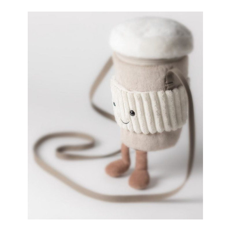 Torebka na ramię Zabawny Kubeczek Kawy Na Wynos marki Jellycat w kolorze beżowo-kremowym z paskiem i suwakiem. Gotowa pomieścić cenne drobiazgi! To wspaniały dodatek, który skutecznie ożywi nie tylko dziecięcą stylizację.
