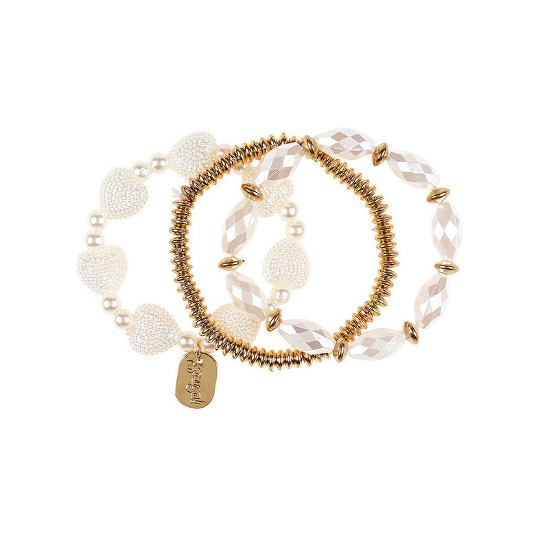 Komplet 3 bransoletek Liz marki Souza! o średnicy 16 cm każda będzie idealny zarówno na przyjęcia, jak i na co dzień. Bransoletki są wykonane z koralików o różnej wielkości i kształtach, w kolorach perłowym i złotym.