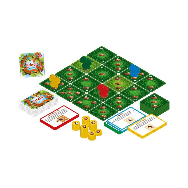 - 4 drewniane wiewiórki, 28 kart akcji, 25 kafelków polany oraz 7 kafelków z dniami tygodnia