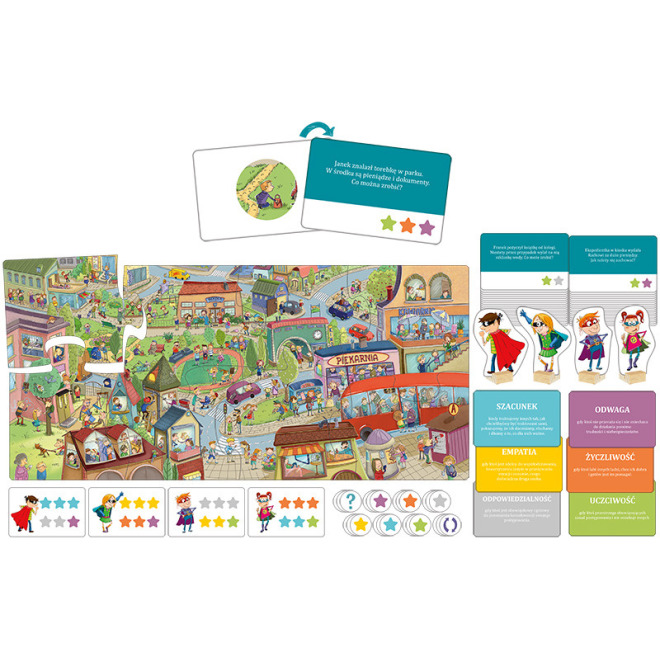 Wartości mają moc to wyjątkowa gra planszowa, w której gracze wcielają się w role Superbohaterów. Ich zadaniem będzie rozwiązywanie różnych problemów, które napotykają mieszkańcy miasteczka.