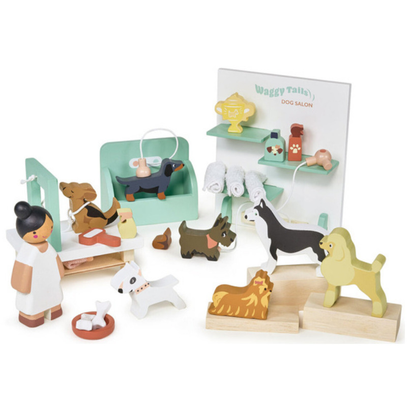 SALON PIĘKNOŚCI DLA PSÓW drewniane figurki z akcesoriami do zabawy Tender Leaf Toys 3+