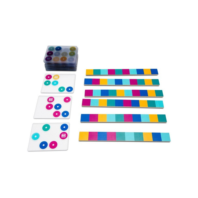 - drewniane paski, przeźroczyste karty ze wzorem w kropki oraz instrukcję