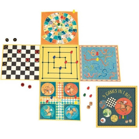 Zestaw zawiera 5 gier w jednym pudełku: plansza i akcesoria