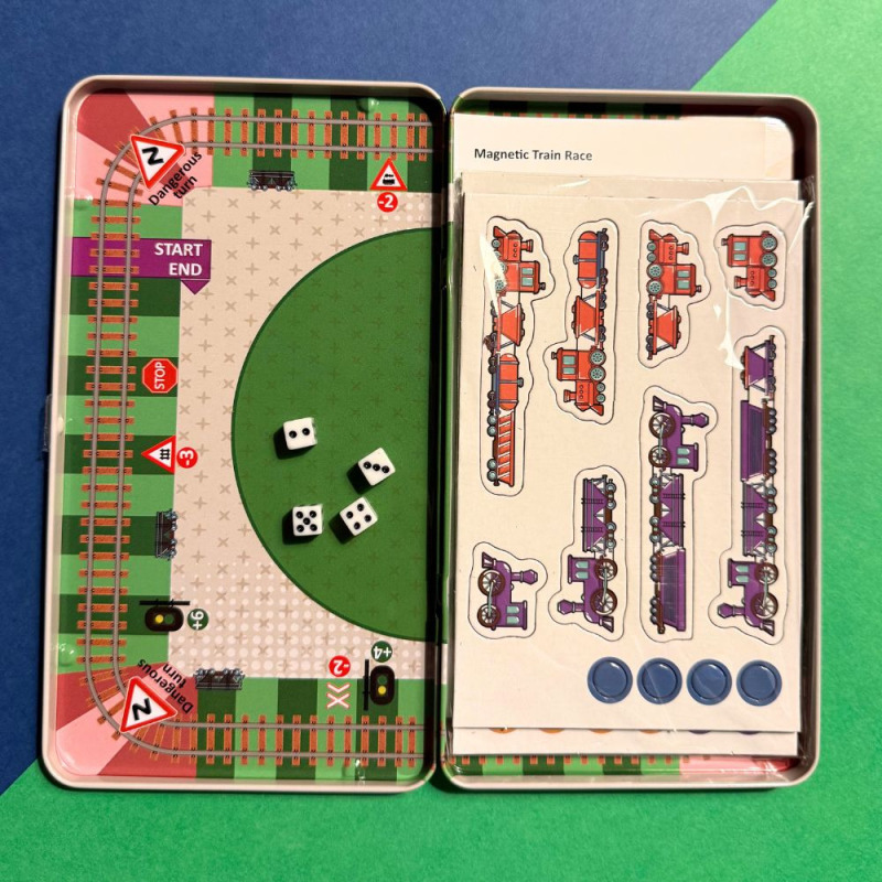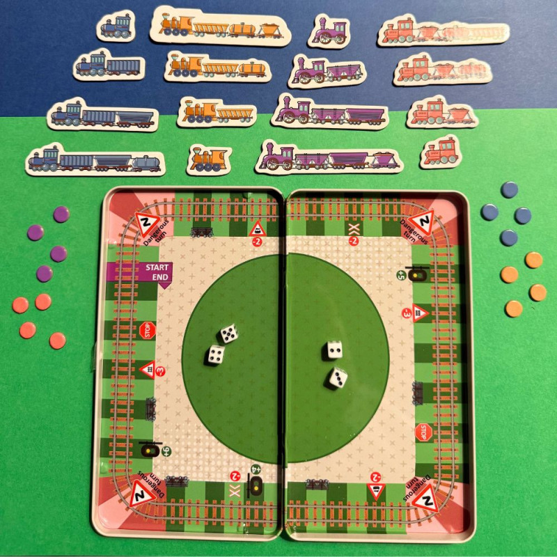 Kompaktowa, emocjonująca gra planszowa, w której gracze ścigają się lokomotywami po magnetycznym torze! W trakcie zabawy zbierają wagony, unikają zakrętów i walczą o tytuł najszybszego maszynisty!