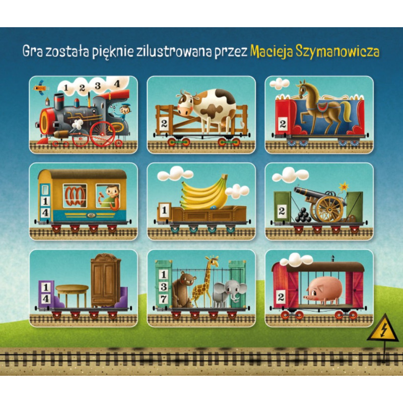 Stoi na stacji lokomotywa... Gra opracowana na bazie wiersza Juliana Tuwima "Lokomotywa". Zanim pociąg ruszy, musisz załadować odpowiednie ładunki na wagony. Zadaniem graczy jest doczepienie odpowiednich wagonów do swoich lokomotyw, a następnie załadowanie odpowiednich ładunków. Wygra ta osoba, która zdobędzie najwięcej punktów za swój pociąg.
