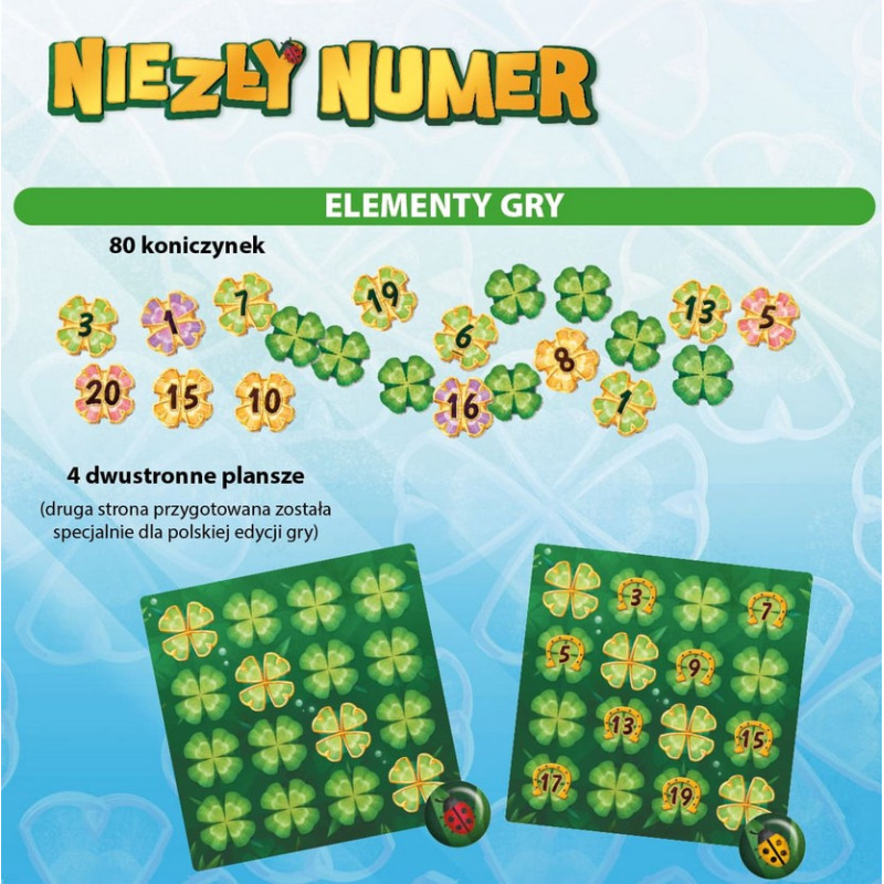 Uwaga! Ta gra wciąga - na jednej rozgrywce się nie skończy. Proste zasady, szybka rozgrywka i masa emocji. Zasady gry opanujesz w 5 minut. Wypełnij swoją planszę koniczynkami. W każdym rzędzie i kolumnie musicie układać koniczynki w kolejności rosnącej.