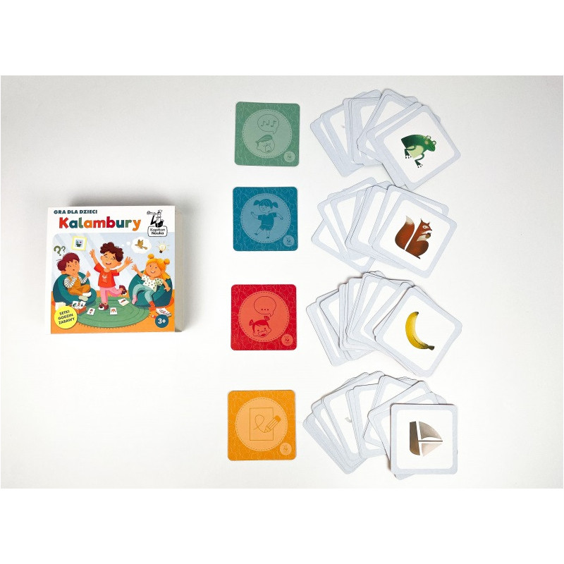 Na kartach znajduje się 105 haseł obrazkowych, które można zaprezentować na cztery sposoby.
