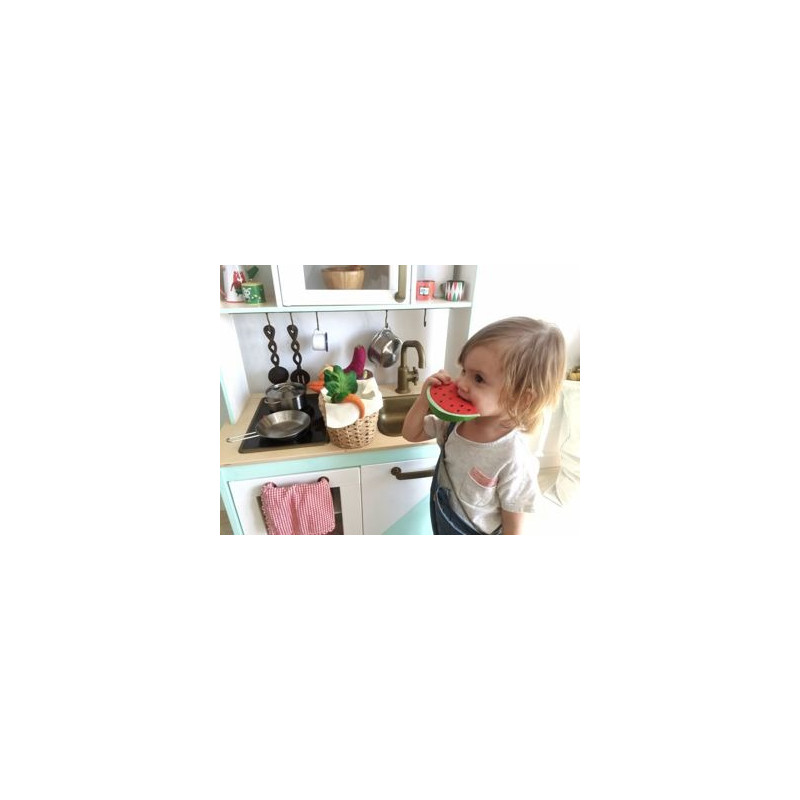 Gryzak w kształcie arbuza to zabawka sensoryczna i gryzak w jednym.