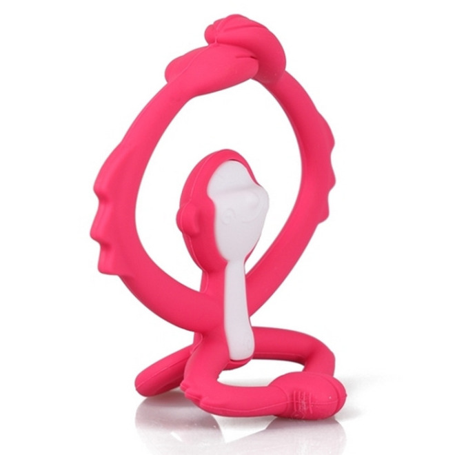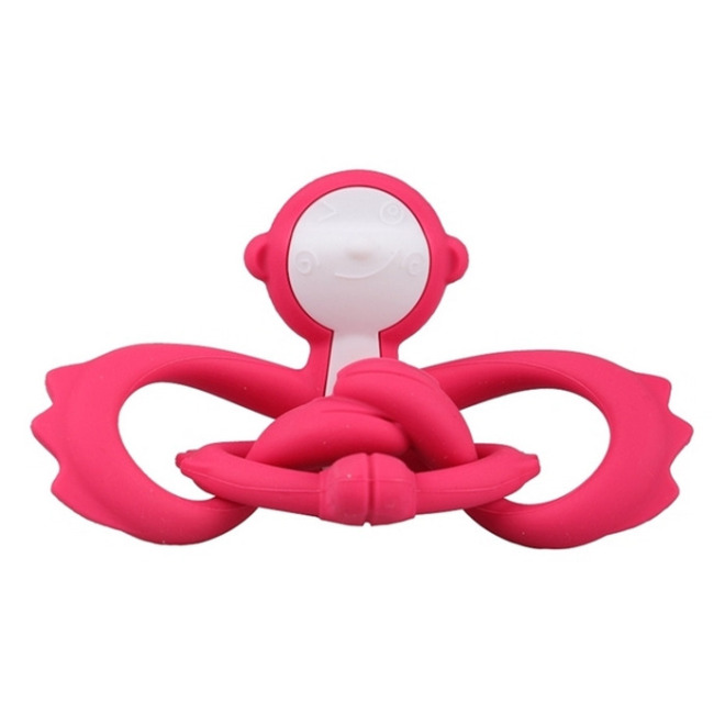 Wielofunkcyjny gryzak w kształcie ciemnoróżowej małpki