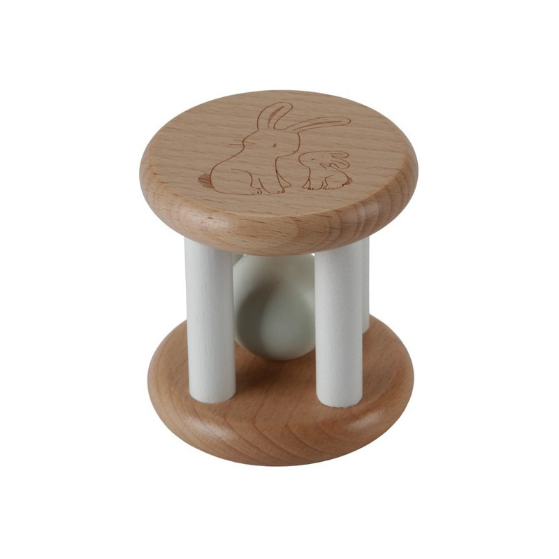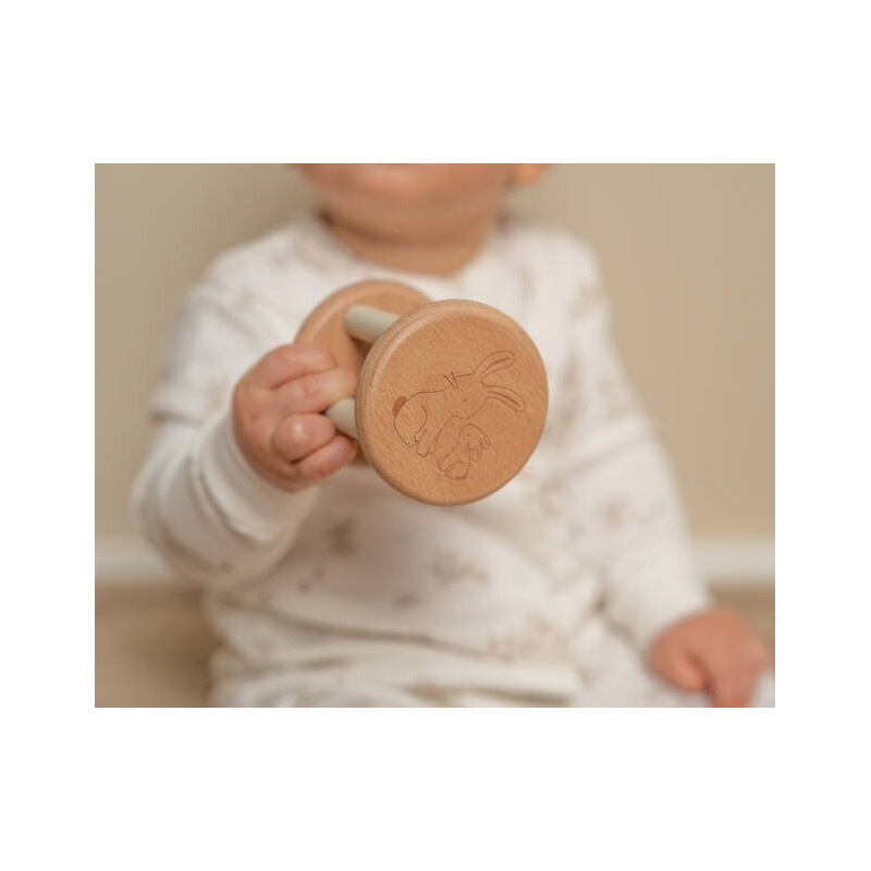 Drewniana grzechotka z serii Baby Bunny z kuleczką w środku będzie świetną zabawką dla maluszka - podczas poruszania wydaje sympatyczny dźwięk. Sprawdzi się doskonale przy raczkowaniu, motywując najmłodszych do przemieszczania się.