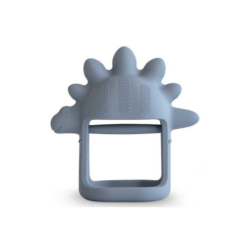 Gryzak w kształcie dinozaura to idealne rozwiązanie dla dzieci podczas ząbkowania. Wyposażony w wewnętrzny uchwyt, zapobiega przypadkowemu upuszczeniu z małych rączek. Gryzak wykonany został z bezpiecznego materiału, który zapewnia ulgę w bolących dziąsłach. Teksturowana powierzchnia i miękkie krawędzie stymulują zmysły malucha i pomagają w uspokojeniu dziecka podczas trudnych chwil.